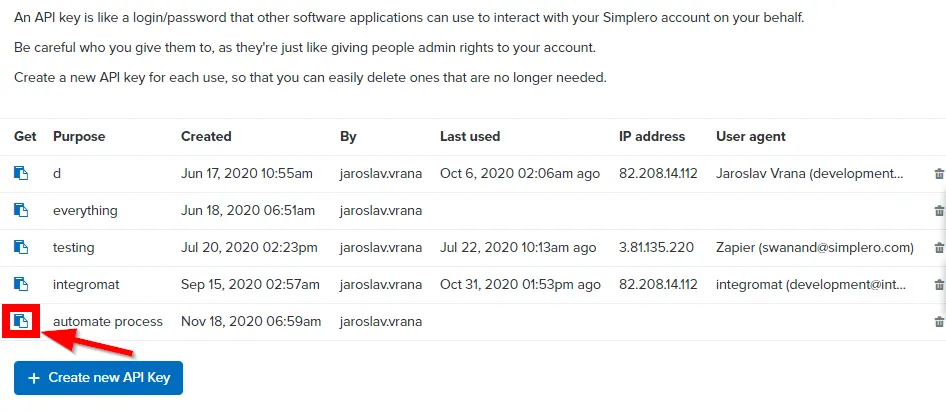the simplero modules allow you to watch, create, update, retrieve, and delete the purchases, tags, contacts, and subscription lists in your simplero account getting started with simplero prerequisites a simplero account in order to use simplero with make, it is necessary to have a simplero account if you do not have one, you can create a simplero account at https //simplero com/accounts/new connect simplero to make to connect your simplero account to make you need to obtain the api key from your simplero account and insert it in the create a connection dialog in the make module login to your simplero account click settings > integrations > create new api key click the copy icon against the api key to copy the api key to your clipboard go to make and open the simplero module's create a connection dialog in the connection name field, enter a name for the connection in the api key field, enter the api key copied in step 3 in the application field, enter your application name if your account's url address is www xyz simplero com then your application is xyz in the email field, enter the email address used for creating the simplero account, and click continue the connection has been established